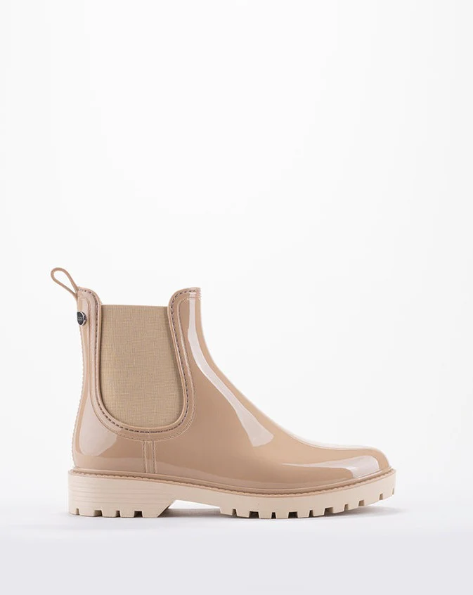 Botín de agua para mujeres que buscan practicidad sin renunciar al estilo. Este botín con acabado brillante combina ligereza, flexibilidad y un diseño moderno tipo chelsea con elásticos laterales, que facilita el calce y aporta un toque sofisticado.