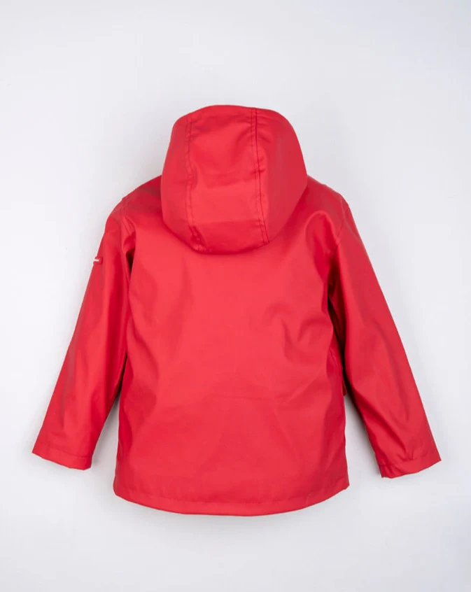 Chaqueta impermeable con interior forrado en textil suave, ideal para proteger del viento y la lluvia. Cuenta con cierre frontal de cremallera y bolsillos laterales con solapa y velcro, que ocultan las cremalleras para un acabado más limpio y mejor ajuste.